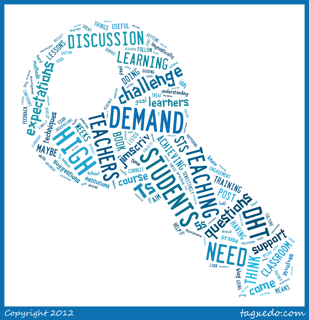 Having been privileged to see Jim Scrivener (@jimscriv) talk at length about Demand-High Teaching (DHT) at the recent IATEFL conference in Glasgow, which led me, via a follow-up session with both @jimscriver and Adrian Underhill, to their blog on this subject as well as his recent book on Classroom Management Techniques, when #Eltchat time rolled around, for me it was the obvious choice of topic to nominate. And, not only was it selected as the number one discussion choice but @jimscriv, himself, was able to join us today from his hotel room in Philly where he is currently attending another conference.