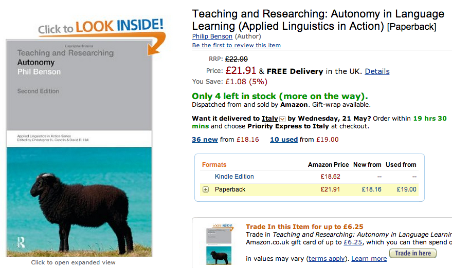 NOTE: In terms of books that are cheap and easily accessible, it is worth bearing in mind that the IATEFL learner autonomy SIG (see “online resources” below) has published a series of edited books related to learner autonomy, that are available in e-book format.