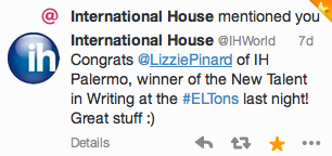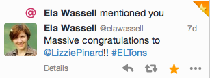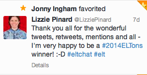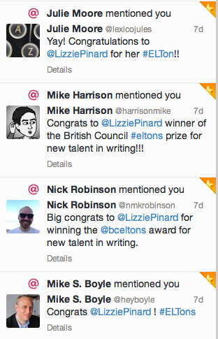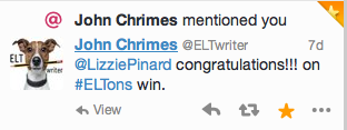 At the risk of sounding unbearably smug and like I’m blowing my own trumpet at full volume etc. (which, let’s face it, would be most un-British!), I’m going to allow myself one more post about the ELTons 2014 and my very unexpected win. Why? After all, yesterdays news, today’s fish and chip papers and all that…