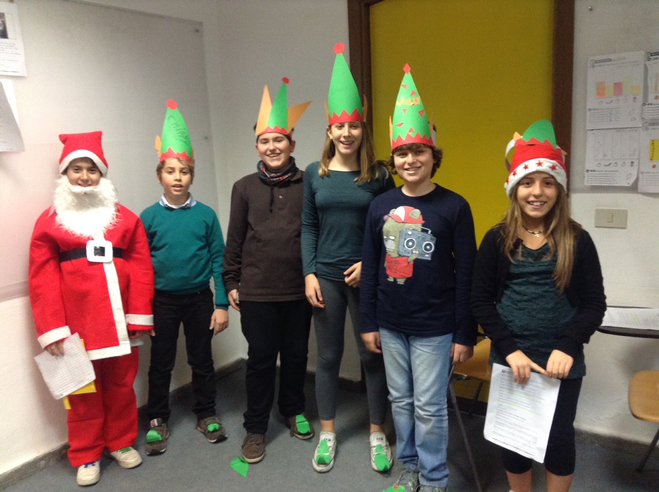 In terms of language, I also managed to work in all of the structures we’d looked at over the course of this term – present simple, past simple and continuous, present perfect, comparatives, possessives and present continuous for future plans – as well as a song and a chant (the chant being based on the wake up shake up chant we do at the start of each class). In terms of preparation, as well as rehearsal time (half an hour per lesson for three lessons), some time had to be spent making elf hats and shoes out of coloured card.