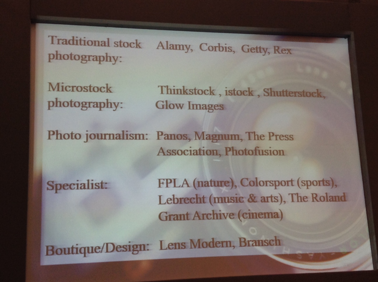 Much like with MCI’s, my general thought is, “who knew there was so much to know!” With both talks, within half an hour I went from knowing very little to at least knowing how little I know! Lots of useful content. From the practical aspects such as how to find the images, sources etc. to the process, where I am particularly struck by the idea of doing an image search around a topic and letting inspiration flow that way. It’s a new way of brainstorming that hadn’t occurred to me before. Not having written an artwork brief before, it was also interesting seeing some examples and then actually doing a task in which we worked in small groups to create a brief for a given image.