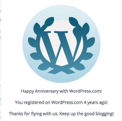 I was closing tabs in my browser when I reached one that was open to a WordPress site, not mine. However, as I am logged in, my tool bar was in evidence along the top and I noticed a little cup symbol in the notifications part. I clicked on it out of curiosity (knowing it couldn’t be about likes or stats because I have been allowing tumbleweed to blow through my blog since IATEFL – work issues have kept me occupied) and discovered that, as per the image above, I registered with WordPress 4 years ago today…