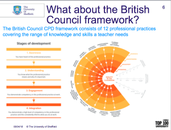 Try some new hats on. A teacher can become a student again, can do some writing, can do some research, can present. This is nothing new, of course. The question is how to systematise this. What to study? What to write? What to present? What to research? This is where, to my mind, the British Council Framework for CPD could come into it.