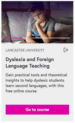 I think there’s a lot we can do as teachers to make our classrooms a place for everybody, regardless of what they bring with them. I plan to blog more about this soon – am currently doing the Futurelearn course on Dyslexia and Foreign Language Learning that Lancaster University has put together and it is super interesting! Week 1 was mostly theory-based, the remaining three weeks have a lot more practical focus in terms of things to look for and things you can do. I’m looking forward to using some of what I learn. Click on the picture below to find out more!