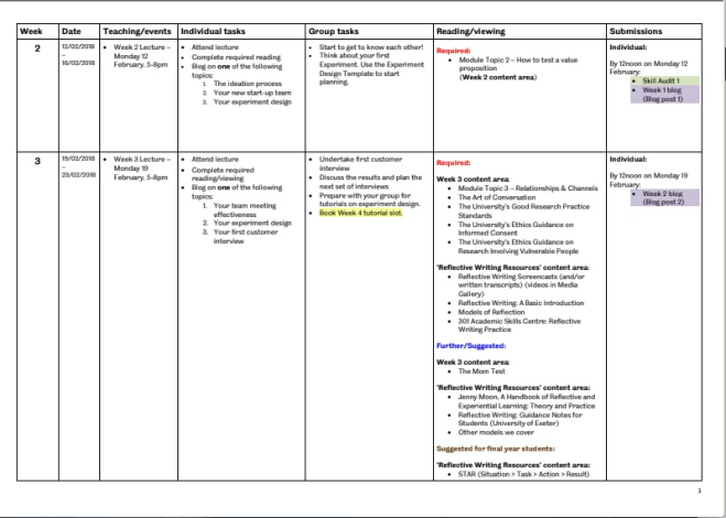 - Week by week task breakdown template: we have a weekly syllabus at the front of our workbooks – could it be more effective? Could there be another document with more information/colour available on Blackboard?