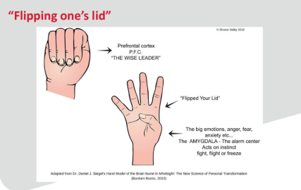 All of this is also relevant for students. When they get angry or upset, it means they are flipping their lid, and as teachers we can recognise they are stressed and feeling threatened, and help them bring their thinking lid back online again.
