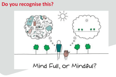 It wanders off into the past, rehashing situations that have already happened, or the future, planning all sort of things e.g. what if this, what will I do when; projecting usually stressful, worrisome thoughts about the future or “if only” about the past. The brain has a negativity bias, or a tendency to look for problems/scan for threats. It likes to worry about how to fix things that may or may not happen in the future. I.e. imagined problems, so trying to fix things that aren’t actually there. This means that you are here but your mind is not. You are not present. And that means you are missing the positive present moment experiences. Emma suggested next time we are in the shower, to try to be present – be aware of the smells, the sounds, the sensations. That is an example of getting into the senses and out of the mind.
