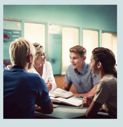Prompt 1: an image of 4 students in a discussion. This was the result: