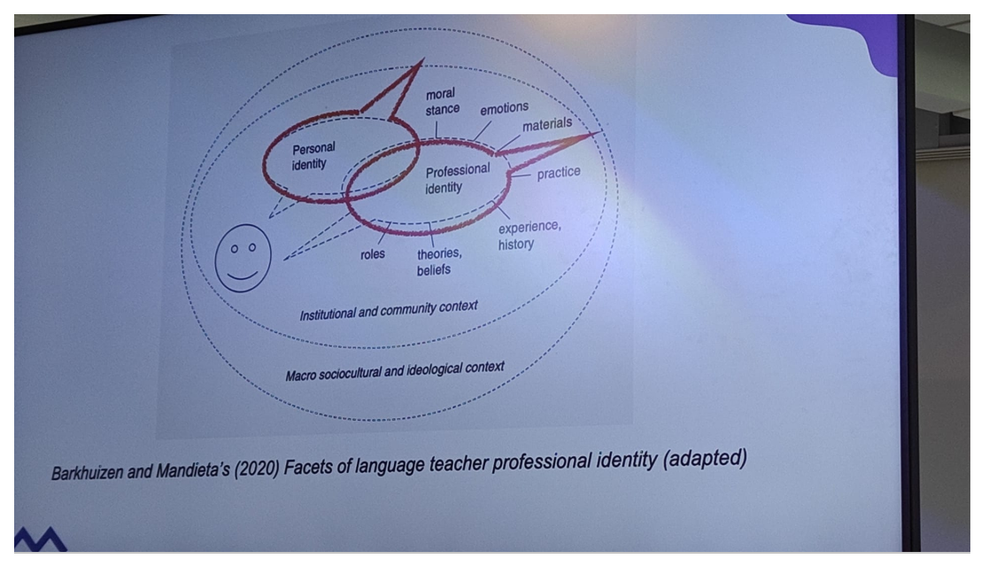 I think opportunities to discuss and reflect on teacher identity, such as the IATEFL 2025 panel written up by Sandy, are invaluable, as identity is constantly evolving and growing. In the first talk Sandy summarised, the speaker, Robyn Stewart, adapted Barkhulzen and Mandieta’s (2020) facets of language teacher professional identity to highlight the influence of the world on identity, external influence on it. It also shows the interplay between personal and professional identity and the elements that can be considered to be part of our professional identity: