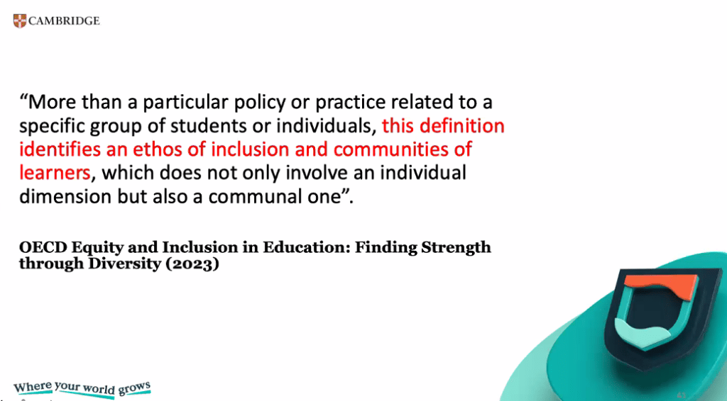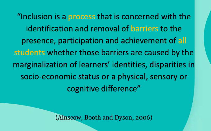 He said keywords were “process” and “removing barriers” and “all students” – not only valid for special educational needs but for everybody.