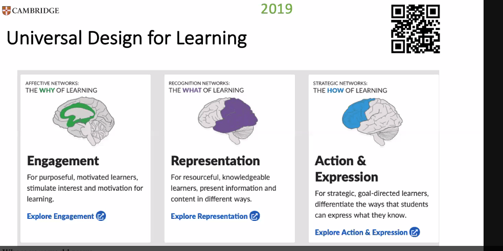 It’s a practical framework for inclusive practice in education in general, also appropriate for language teaching. 3 central ideas.