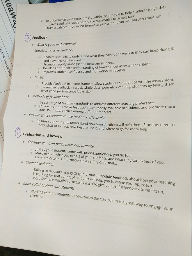 There are a variety of ways to do feedback and it is important that we make use of this to avoid doing feedback in the same way every time. As with materials, tasks and assessment, doing things in the same way every time disadvantages and advantages the same students every time. It is important to ensure that students understand the role and function of feedback, and that you teach them how to use it most effectively to improve their performance.