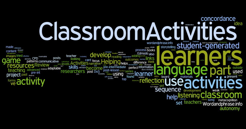 Here are some of the classroom activities I’ve tried out and posted about over the months/years. I have attempted to categorise them, so that you can look more easily for categories that are of interest to you. I will keep adding to it as I publish more posts. (More activities can also be found by looking on my Materials page .)
