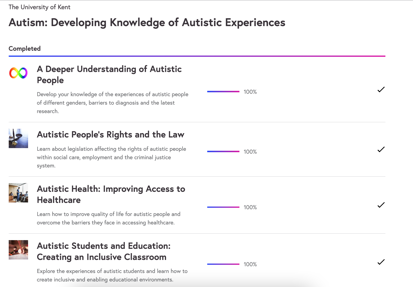 FutureLearn expert track on Autism (4 x 4 week courses)