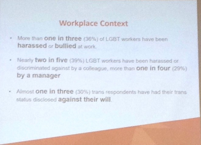 The second session focused on bullying and harassment in the workplace specifically in relation to LGBT+ people.