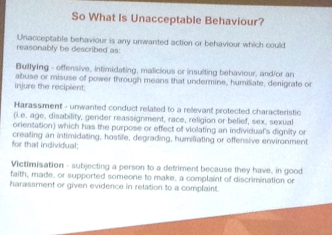 Then we considered what barriers there may be to reporting bullying/harassment in the workplace…